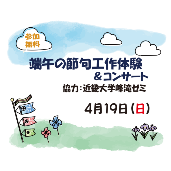 ちりめん細工でうさぎのお雛様作り&コンサート 【ご参加ありがとうございました】 東大阪で雛人形・市松人形を製造されている松よし人形の皆さんにご指導いただき、可愛いちりめん細工のうさぎのお雛様をつくります。春という季節を寿ぎながら、ひな祭りコンサートで祝いませんか。 イベント名 ちりめん細工でうさぎのお雛様作り&コンサート 日時 2024年2月25日(日) 13:00~15:00 定員 / 対象 15名 / 小学生以上 参加費 500円 講師 松よし人形の皆さん 演奏 アンサンブル・ビバーチェ 「ちりめん細工でうさぎのお雛様作り&コンサート」チラシ