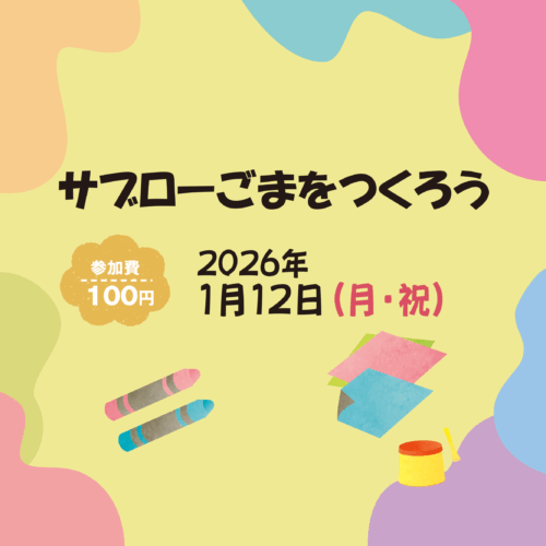 グリコのおもちゃデザイナーとして活躍した宮本順三さんの記念館「豆玩舎ZUNZO(おまけやズンゾ)」より、磯田 武士さんを講師にお迎えします。「サブローごま」は、描く・作ることの楽しさや、回すと色や模様が変化するデザインのおもしろさが詰まったワークショップです。